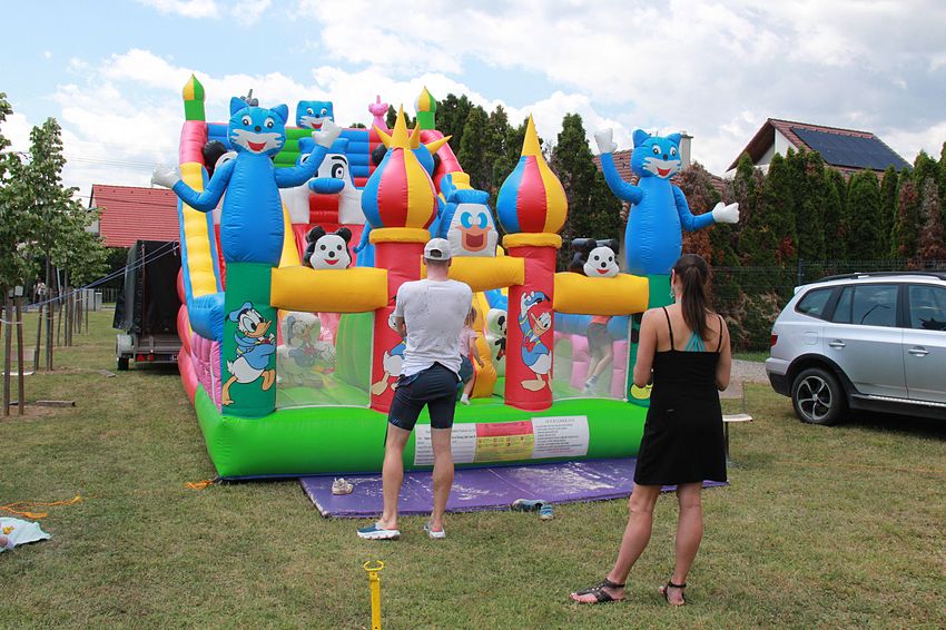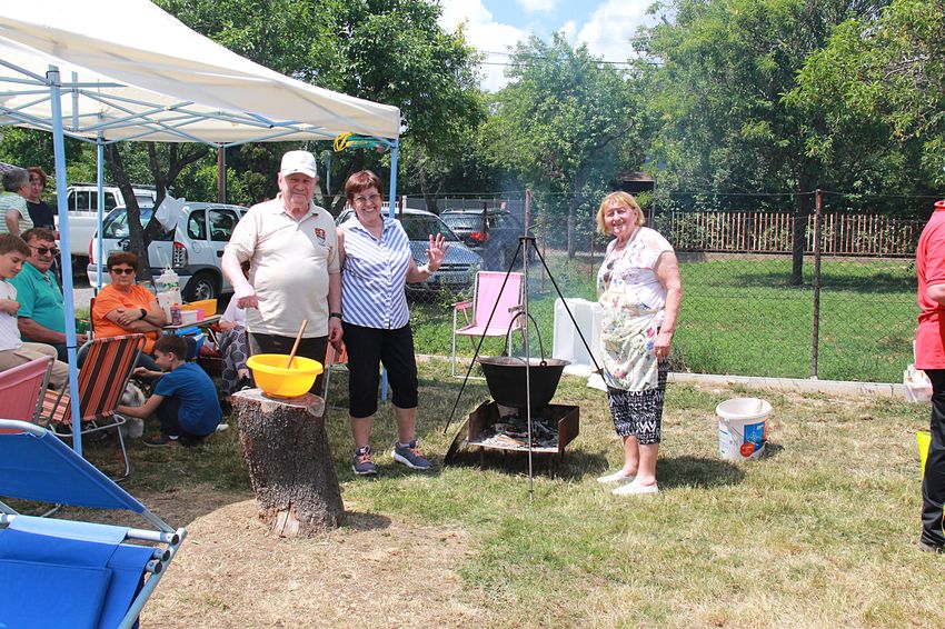 Míg a felnőttek a bogrács- és asztal körüli teendőkkel voltak elfoglalva, addig a gyerekeknek is jutott szórakozás. Hiszen a gyereknap is május végére esik, erre gondolva, ingyenes lehetőségként várta őket az ugrálóvár, a körhinta vagy a még kisebbeknek a körutazás régi autókba ülve, esetleg lóháton. S egyéb csábítások is, mint céllövölde, az édes ízek egész kavalkádja, pattogatott kukorica, játékok, édességek…..arcfestés, gyöngyfűzés. Később büszkén mutatta egy kislány a többsoros karkötőjét, tényleg szép volt.