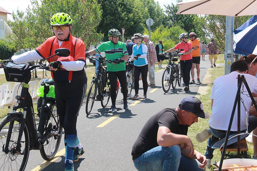 Innen, a környékről, Veszprémből, Bp-ről, messzebbről is, ha a barátok úgy érezték, jó alakalom a találkozásra. S bizony jó! Ez a nap is ezt bizonyította. A helyfoglalások után a berendezkedés is fontos, sátorállítás, főzési előkészületek, mindenek előtt a tűz élesztése, táplálása és parázzsá szelídítése fontos feladat. Minden csapatnak megvan a saját tűzmestere, néha több is, e fontos tevékenység nagyfokú éberséget és figyelmet kíván….. A sörasztalok is a helyükre kerültek a padokkal együtt, a hangulatossá tétel már a női figyelmesség eredménye. Abroszok borulnak az asztalokra, virágok kerülnek a vázákba, s persze a hozott adományok legelőbb…. olyan kedvcsináló italok, pogácsák mellett egyéb sós és édes sütemények…..Minden adott, hogy ne csak füst terjengjen a környéken, hanem idővel illatok is, az ilyen-olyan pörköltek gőzei lassan szétillantak a bográcsokból.
