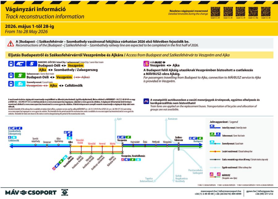 A Hirdetmény teljes anyaga itt elolvasható: MÁV hirdetmény Veszprém-Ajka 2026. május